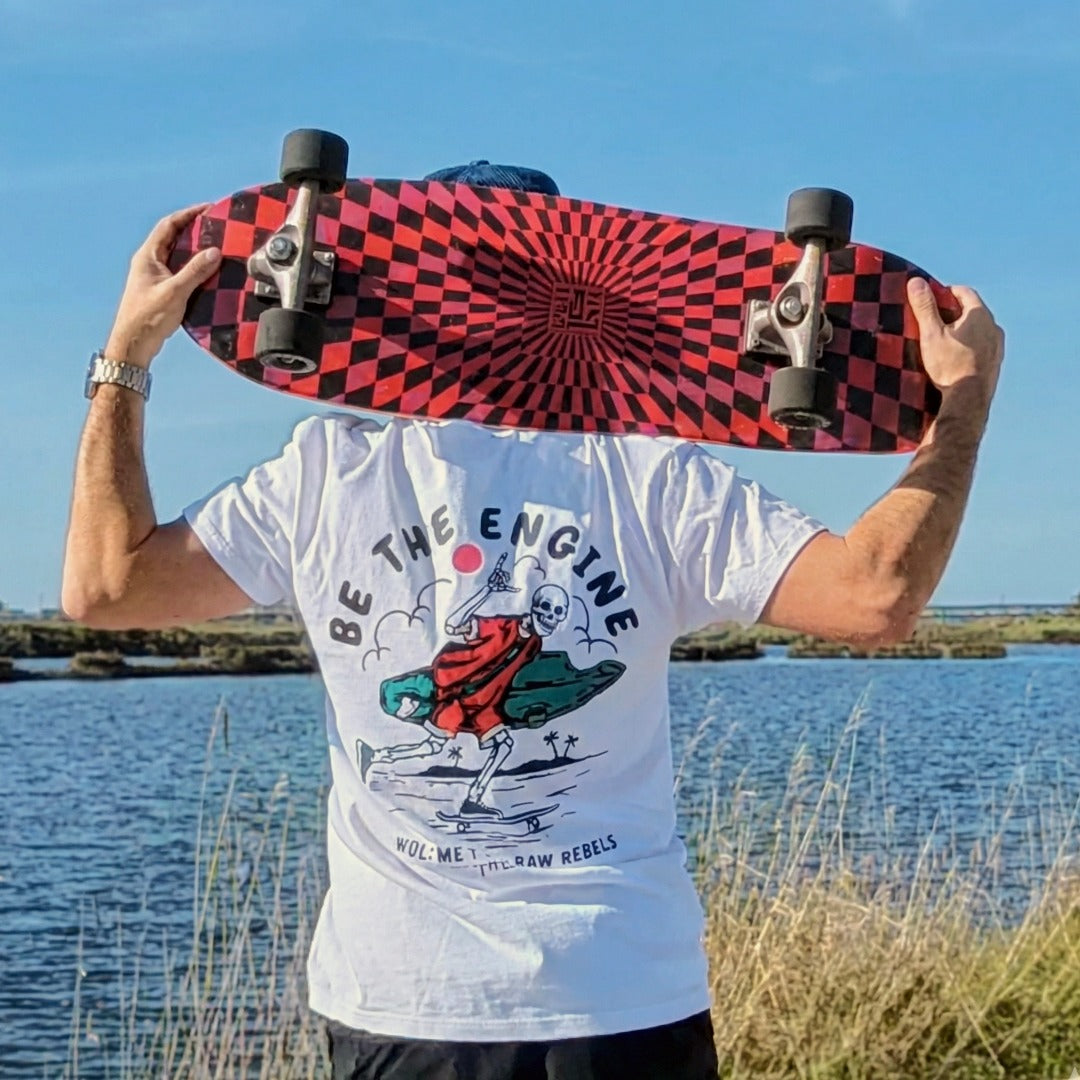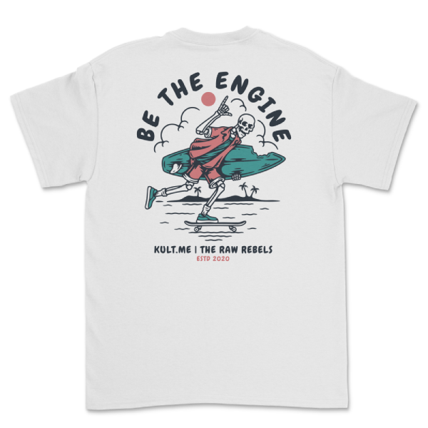 Não esperes por vento, por ondas perfeitas ou por um motor de arranque. No movimento Raw Rebels, o motor és tu. Esta t-shirt é para quem mete o skate debaixo do braço, a prancha na mão e não pede licença para avançar. Se queres que algo se mova, sê o motor.